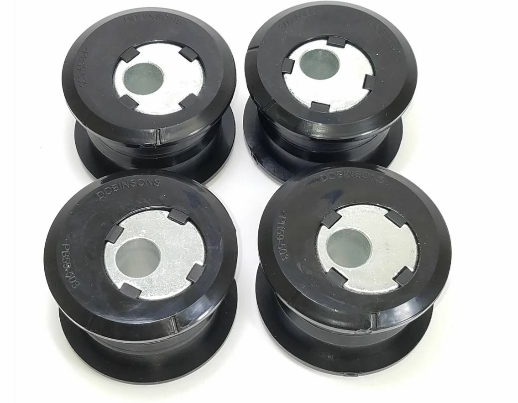 For 0″ to 4″ of lift, Recommended when replacing 20+ year old suspension parts Contains all 4 bushings for the front of the radius arm to axle Can be set to 3 different caster settings quite easily Dobinsons offer other separate bush kits for Caster and Radius Arms. Contact us for more information Dobinsons Spring and Suspension Polyurethane bushes have been designed and manufactured from the highest quality raw materials. This PB59-503K Adjustable Front Radius Arm Caster Bushing Kit is designed for the 1990-97 Toyota Land Cruiser 80 Series Wagon and Land Cruiser 105 Series. The kit provides 4 x Polyurethane Eccentric Bushes / Bushings with a built-in sleeve to adjust caster setting from 0° to 2.5° or 3.5° of correction Caster angle plays a major part in vehicle straight line stability and helps the steering to return to center. If the vehicle’s suspension has been raised, the required positive caster angle is reduced and the caster angle moves closer to zero, impairing the vehicles steering stability. A wheel alignment done by a reputable 4×4 wheel alignment center can determine whether caster correction is required. Dobinsons Spring & Suspension offer a full variety of suspension components for this vehicle, including replacement bushings for all control arms front and rear. A complete bush kit is available, part PB59-1258K. Contact Dobinsons for more information. For suspension lift kits between 50mm/2″ and 90mm/3.5″ caster correction is required, and also adjustable panhard rods are highly recommended. For customers wanting to maximize the off-road performance extended sway bar links and extended brake lines are also recommended. Extending the vehicles bump stops and driveshaft modification may also be required depending on the application. For suspension lift kits exceeding 90mm/3.5″ considerable alignment parts are required. Caster correction, adjustable panhard rods, sway bar extensions, extended bump stops, extended brake lines, gearbox spacing, driveshaft modification, adjustable/modified rear trailing arms and adjustable steering arm modifications are required along with other driveline, suspension and steering modifications which may also be required. Note: For Off Road Use Only PB59-503K Caster Bushing Kit Instructions
