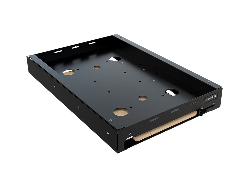 Access your fridge (35L to 45L/9.2 gal to 11.9 gal) and/or other stored gear with this low-profile, heavy-duty slide. It features a hold-open mechanism and high-strength bearings that allow the tray to extend nearly 100% from the anchored base, offering full access.nnConsists of:1 x Dometic Cargo Slide/Fridge SlideInstallation HardwareFitting Instructions Materials used:Black powder coated steel Product Dimensions:Overall Dimensions:739mm (29.1”) L x 471mm (18.5”) W x 95mm (3.7”) H Closed Dimensions:739mm (29.1”) L x 471mm (18.5”) W x 95mm (3.7”) H Open Dimensions:1428mm (56.2”) L x 471mm (18.5”) W x 95mm (3.7”) H Weight:14.23kg (31.4lbs) Load Rating:90kg (198lbs)nnMountable to any flat surface, including Front Runner drawer systems and pickup truck beds. The slide-out extension gives you an additional 425mm/16.7” x 277mm/10.9” work surface. This heavy-duty slide is big enough to hold a fridge (35L to 45L/9.2 gal to 11.9 gal). Mounting holes are pre-drilled. High-strength bearing drawer slides allow the tray to extend nearly 100% from the anchored base. The unique design keeps the slide rattle-free when closed. A latching arm securely locks the drawer in the closed position. Features a hold open mechanism to prevent the slider from closing when the vehicle is parked on uneven surfaces. Finished in the same durable weather-resistant black powder coating as the Front Runner Racks. Can have many other uses, like carrying tools, boxes, or other adventure gear. Four (4) STRA063 are included to secure your fridge to the fridge slide. Mounting hardware included for wood and metal surfaces. This Cargo Slide/Fridge Slide is suited to fit FRID097 and FRID098. Note: Fridges or other storage containers are not included when purchasing this Cargo Slide and are sold separately.