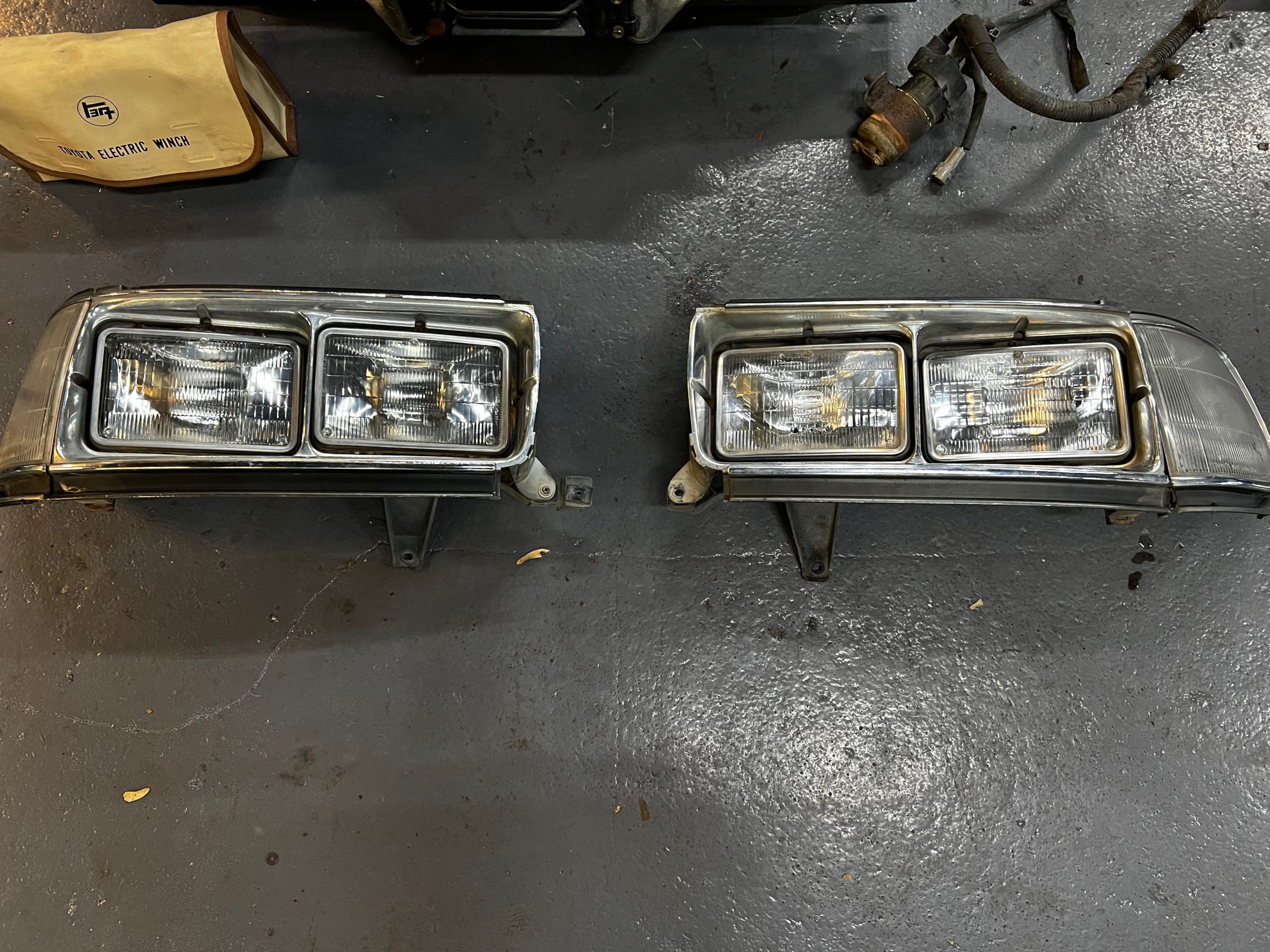 Convert your US Spec 80 series from a full headlight to a quad headlight using our OEM Kit.All parts are used in good condition with some minor scratches. Lights may work.Kit includes:Left and right head light housing with chrome bezelFactory correct corner lamps. The shipping is set as free, because we do not have the exact amount until the item/s are packed and checked with the shipping company of exact weight and size of package. Please considered this when making your purchase. We will contact you to advise you of the exact shipping amount