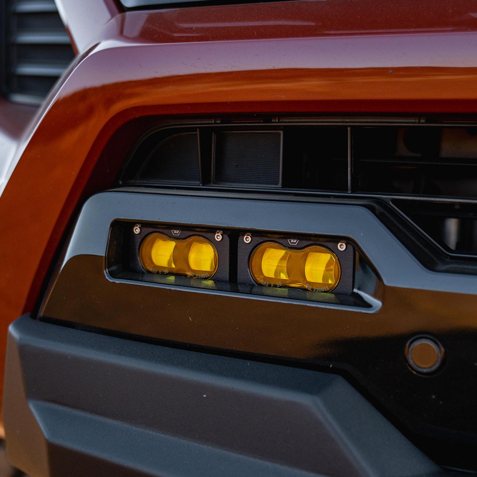 The Baja Designs S2 SAE Fog Light replacement Kit for the 2024-on Toyota Tacoma TRD Pro/Trailhunter models are designed to light up the road and trail to differentiate your vehicle from the pack.